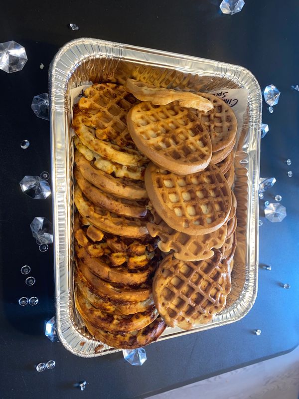 50/100 Crispy Chicken Wings with a choice of Plain, Cinnamon- Spiced, or Cheddar-Herb Waffles.